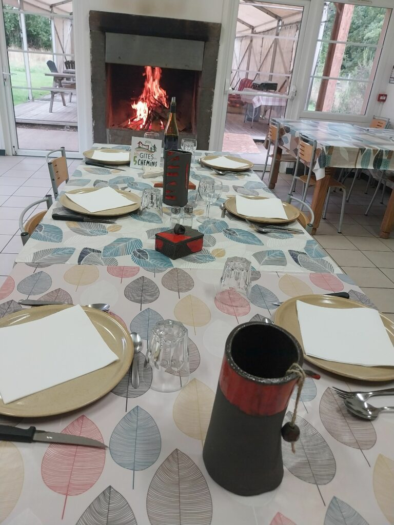 Nous nous adaptons à ce que vous souhaitez au maximum. Nous pouvons par exemple proposer un repas froid le midi : salade de pâtes, lentilles, endives, ou autres selon la saison, plateau de charcuterie et de fromages… Pour les repas du soir, ils seront identiques à ceux proposés aux randonneurs : une entrée froide de type salade composée, un plat chaud convivial (spaghetti bolognaise, blanquette de dinde, potée auvergnate), du fromage ou un dessert maison (compote, tartes…).