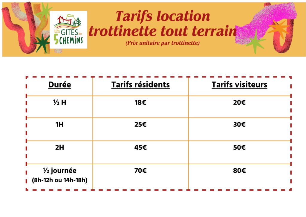 4 trottinettes SF Onride disponibles. Réservation conseillée par téléphone au 06.33.89.15.72